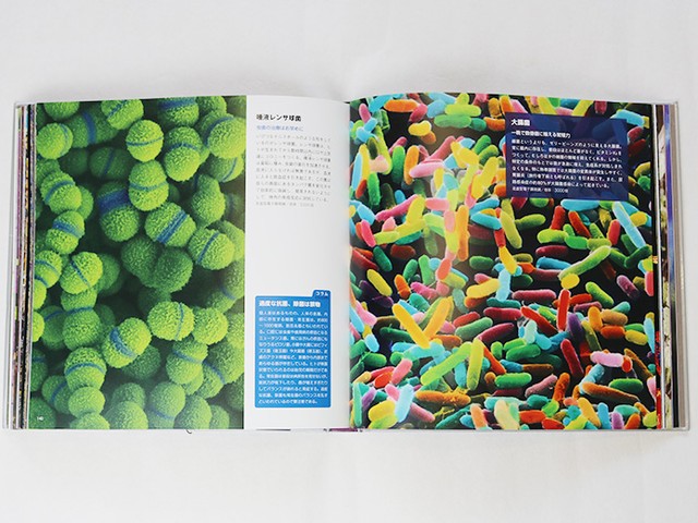この図鑑では、人間の目では見ることのできないミクロの視点から、人体を形成する多種多様な細胞152点の姿をクローズアップ。人体の細胞や器官だけにとどまらず、病気の原因となるウイルス、抗生物質などの薬の結晶までも取り上げています。