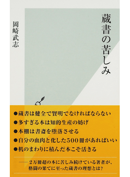世代こそ違えども、蔵書家の末路は芳しくないのでしょうか。蔵書に魂を売った引き換えに受け入れなければならない宿痾(しゅくあ)なのでしょうか。岡崎さんの『蔵書の苦しみ』は、後進がそんな目に遭わないため、自らの経験から絞り出した教訓を十四箇条にまとめた新書で、どれも深く納得するものばかりです。蔵書家は、もしも人生を破綻(はたん)させたくなければ、この教えを一度は嚙みしめる必要があります。