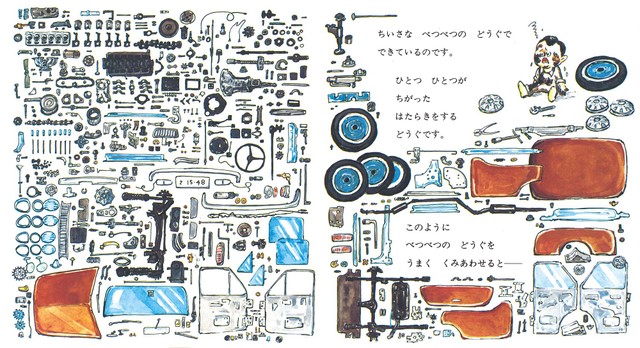 次に『知る』ですが、これは断面図ばかりを集めた展示です。先生の本には断面図を見せたものがたくさんあります。断面といってもいろいろあって、家を切ったり、『地下鉄のできるまで』という作品では、地下でどんな工事が行われているか、普段見られないところを切って見せています。これもまた、子どもたちの発見につながるんですね。