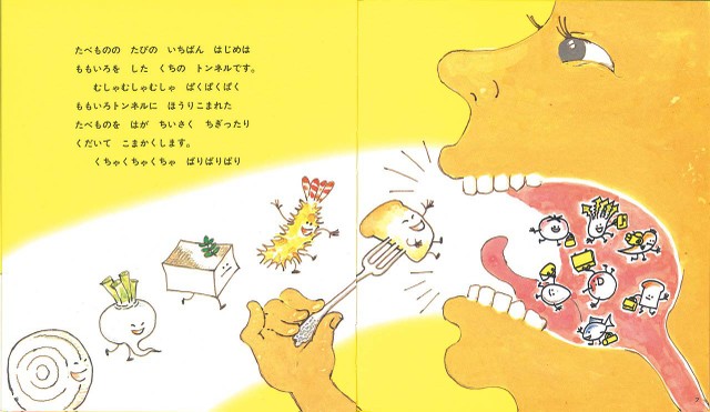 そして『学ぶ』は過程の絵を集めています。たとえば『はははのはなし』という本では、虫歯になったらこうなるんだよ、怖いんだよ、と歯が溶けていく様子が描かれています。この先どうなるかを見ることは『学び』につながるということで、この柱を立てました。
