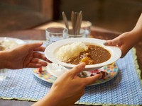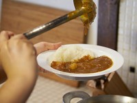 ごはんがたけて、ごじまんのカレーライスです。 ていねいにつくった、ごうかばんのカレーです。