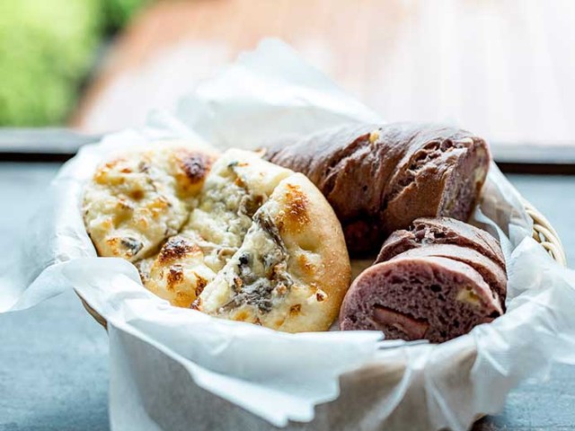 外観は和風だけれど、一歩中に入るとスペインの洞窟を思わせる空間が。ここには毎日約50種のパンが並び、手作りのコンフィチュールも充実。自家製酵母で作られるパンは噛むごとに甘さが広がり、その滋味深さに感動してしまう。名物は自家製酵母から熟成種を起こし、レーズンやくるみを練りこんだ“熟成パン”と、季節の味も登場する“スコーン”。店の奥にはカフェが併設され、もし席が空いているなら迷わず着席を。目の前には河口湖が広がり、対岸には大きな富士山がどどーんと鎮座。天気がよければテラスも解放されるので、気持ちのいい風に吹かれながら淹れたてのコーヒーとパンをいただける。非日常感にどっぷり浸って、絵本やエッセイ本を片手にゆるりと過ごしてみたい。スタッフの笑顔とおもてなしも心地よく、何度でも帰ってきたくなる場所だ。