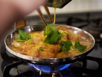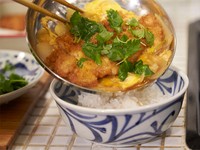 ほどよい厚さの豚肉をカラッと揚げて、つゆだくのシズル感あふれるカツ丼をめざしました。半熟感の残る玉子をまといつつもサクッとした食感のカツと、だし香るつゆに浸かってもべちゃっとしないかためのごはん。この組み合わせは、まさに非の打ちどころがない、完璧なカツ丼でした。