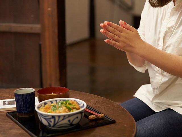 料理研究家のアシスタントをしている主人公のみかげが、取材のお供で伊豆に行った際に夜中にふらりと入ったお店で食べたカツ丼です。そのあまりのおいしさに、みかげは大切な存在である雄一の元へと衝動的にカツ丼を届けに向かいます。夜中に長距離をタクシーをすっ飛ばして。