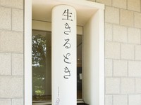 文学館入口へ続くスロープの脇に立つ円柱。ひとつめの柱に「失いし」という言葉が書かれている。二つ目の柱には「言葉がみんな」、三つ目には「生きるとき」。そうして柱を辿って言葉を繋げていくと短歌になる。