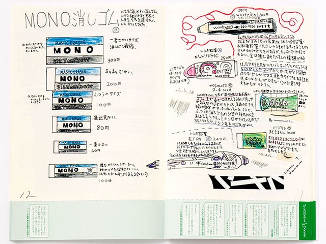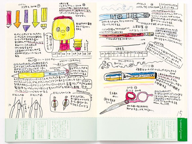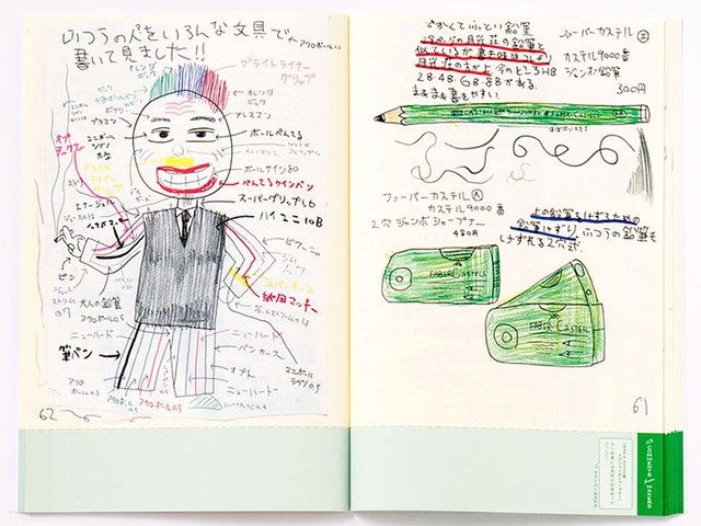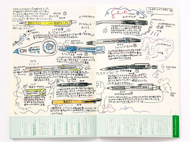 一つ一つの文房具を細かく観察しているのもさることながら、小学生ならではの視点で鋭いツッコミを入れた解説文も秀逸。例えば、三菱鉛筆「ハイユニ」については、「こりゃあビックリ。な、なんと10Bから10Hまであるえんぴつだ。10Bはまるでクレヨンのように、10Hははりで紙に文字をかいてるようなかんじだ」と的確にコメントしつつ、その描線も掲載。その一方で自分が描いた「ハイユニ」のイラストに対しては「本当はあずき色。こんな色じゃない」と自らツッコミを入れていて、読んでいるだけでニヤニヤしてしまいます。