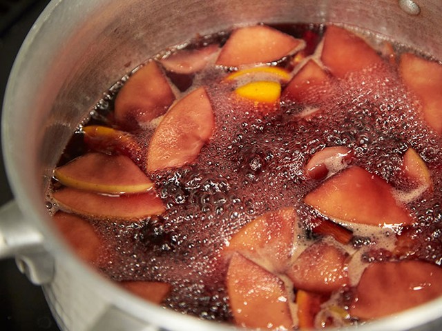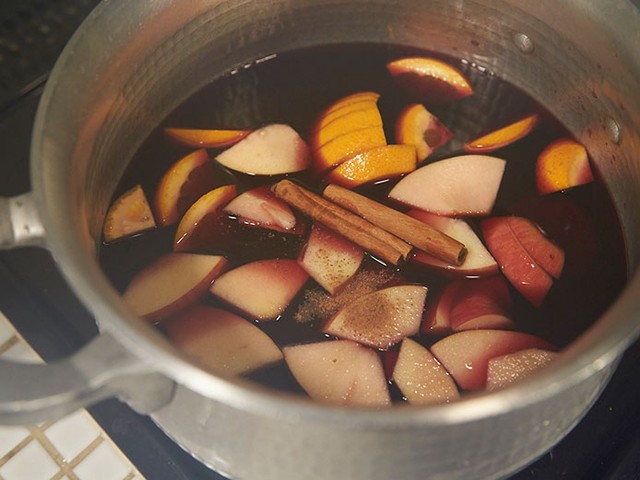 とはいえ、大人な好書好日編集部は、赤ワインをベースにリンゴやオレンジ、しょうが、シナモンなどのスパイスを投入し、鍋でグツグツ。煮てアルコールはほとんど飛ぶので、お酒が弱い人でも美味しくいただけます。