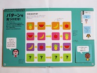 例えば、パイナップルやリンゴなどのフルーツが並んでいる絵から「パターン」を見つけ出すゲーム。所々に散りばめられたヒントを頼りに「パターン」という概念をゲーム感覚で学ぶことができます。大人も一緒に頭の体操をしてみるのもよさそうです。