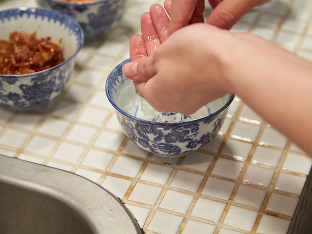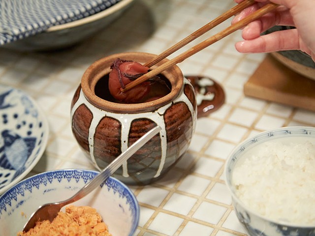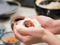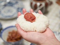 ご飯が炊けたら、あとは握るだけ。具は人生にとって良くも悪くも思い出深い、梅干しを選びました。最後に海苔を巻いてできあがりです。