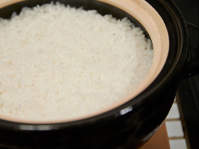 ふわっと真っ白い湯気が上がった。たちまち、香ばしいご飯の匂いに包まれる。釜の中をのぞくと、真っ白な米粒が立ち並んで、つやつやと輝いている。