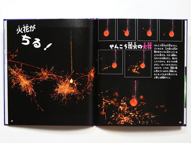 子ども向けの本とはいえ、大人が手にしても知られざる世界が広がっています。例えば、線香花火。パチパチと火花が散って見えている光の線は、飛び出した火の粒の残像なのだそう。花火の中でも趣がありますが、残像だと知るとよりいっそう儚さが増します。