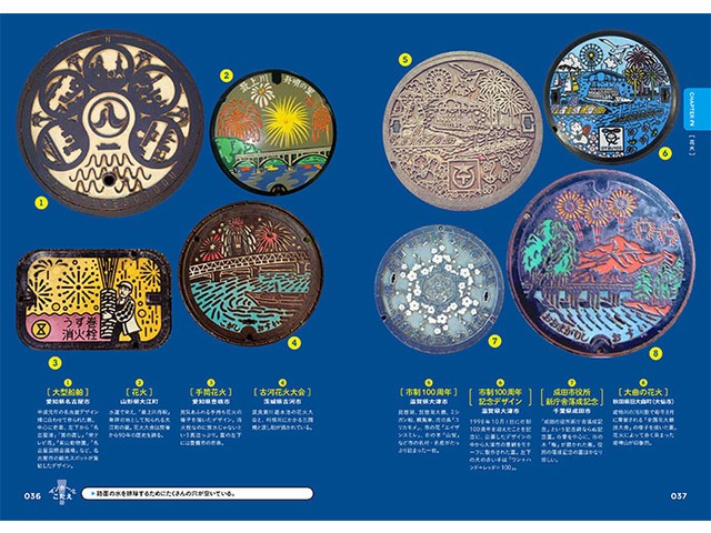 海外のマンホールも比較のためにいくつか掲載されているのですが、日本のマンホールが圧倒的にカラフルでデザインの種類も豊富なことがよくわかります。