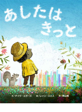 茶色い肌の子どもが主人公の「おやすみなさい」の絵本。「あしたはきっと」という言葉に続いて、子どもの日常を彩る青空や、おいしい食べ物や、だれかの歌声が出てきたかと思うと、だんだん想像がワイルドになって、クジラに乗ったり、「へんちくりんなやつ」を見つけたり、笛を吹きながらカタツムリを散歩させているおじさんに会ったりもする。今日がつらかった子どもにも、明日はきっと素敵なことや不思議なことがありそうと思わせてくれるのがいい。寝る前に読んでも、読んでもらっても、楽しいよ。(翻訳家 さくまゆみこさん)
