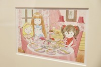 私は手書きの絵に直で彩色しているので、原画ではちょっと色がはみ出ていたり、ホワイトで修正していたりするところもわかります。「生の絵ってこうなんだな」と感じていただければと思います。あとは、印刷ではなかなか出ない色というのがあって、例えばピンクや紫は原画の通りの色にならないんです。本と原画とを見比べて「こんな風に違うんだな」と色の違いに注目するのも面白いと思います。