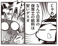 ――保育士の給料が安い理由について、偏見と誤解に満ちた現状が語られ、解決策のポイントが打ち出されます。ちょっと希望が見えてくる展開になっていますね。前作『キミのお金は~』は1話読み切りでした。こちらは「消費税10%時代を生きのびろ!」「治そう!緊縮財政病」など、経済の基本が分かる組み立て方になっていました。こうした体裁は今後も変わらず、でしょうか。