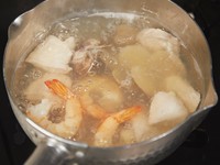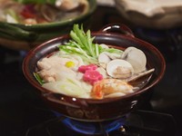 「ボタンエビに蛤(はまぐり)、鶏に梅の生麩かい。おごったね、しんちゃん」 「しかもこの鶏、葛をひいてあるよ。できた女房でも、なかなかここまではやらないのに。ちょいと嫁に欲しくなるねぇ」 「ボケるなら食ってからにしろ、じじぃ」