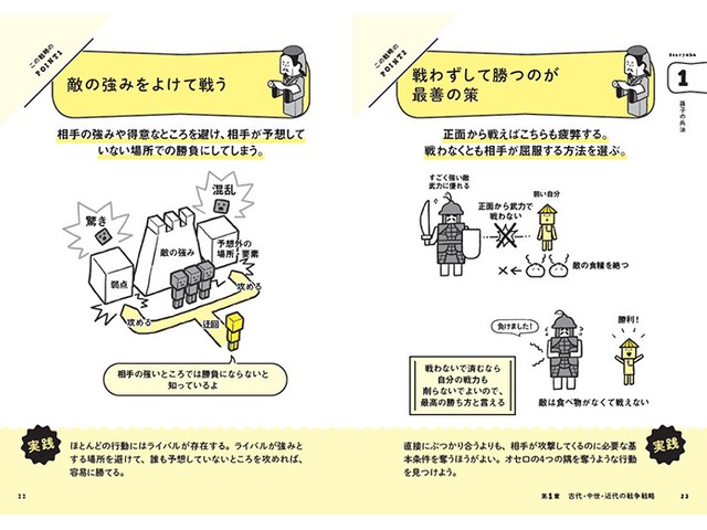気になる戦略やキーワードから読むのもアリですが、巻頭の「戦略史MAP」を眺めながら古代から現代まで順を追って読んでいくと戦略の歴史と進化を感じられます。ナポレオンの時代以降、後世に残る戦略がたくさん生まれた背景には技術革新があるというのも面白いところです。