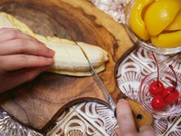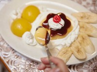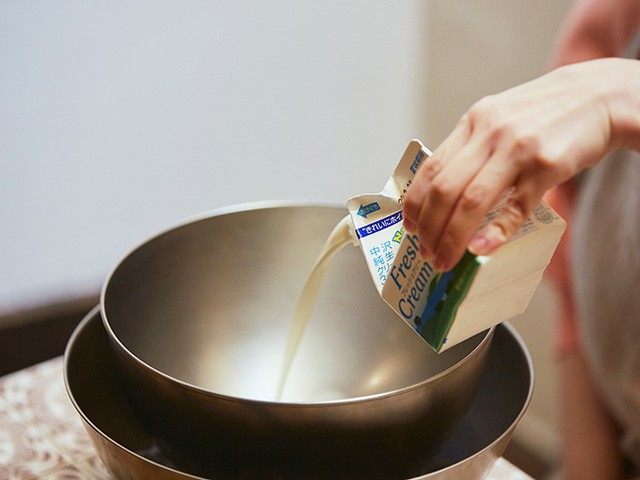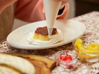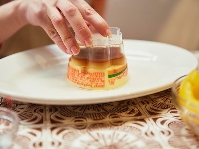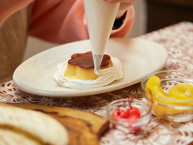 プリンは市販のビッグサイズのものを用意し、大きなお皿の余白をフルーツと生クリームで埋め尽くしていきます。見た目はなかなか質実剛健なたたずまいに仕上がりますが、甘党ならこの組み合わせには不満はないはず。これぞ薫が言うところの「潔い」プリンアラモードというものができあがります。
