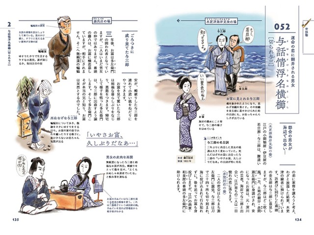 本書には「八月花形歌舞伎」で上演される「義経千本桜」や「与話情浮名横櫛」「連獅子」も収載。中でも歌舞伎初心者の筆者が気になったのは、若旦那の与三郎とやくざの親分の妾であるお富の波乱万丈な運命の恋を描いた「与話情浮名横櫛」です。