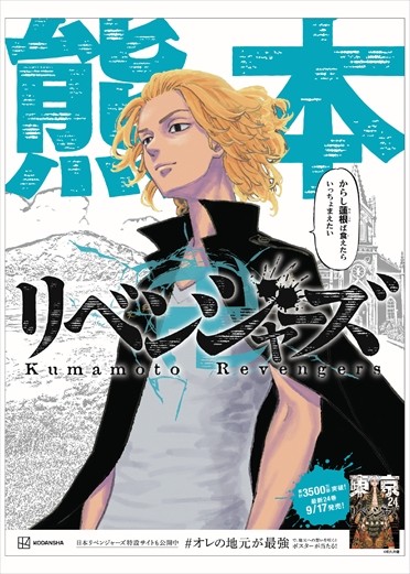 広告の絵柄は、配布される都道府県ごとに異なる全47種類。主人公の花垣武道(タケミっち)が「京都リベンジャーズ」として「京都にきぃや」と呼びかければ、タケミっちを目にかける不良グループ「東京卍會」総長のマイキーは「熊本リベンジャーズ」として「からし蓮根ば食えたらいっちょまえたい」とつぶやくなど、ご当地ネタと方言が登場。東京都内のみ「日本リベンジャーズ」として主要キャラクターが総出演しています。
