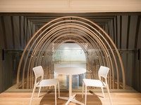 流線形の庇(ひさし)が、真っ白な建物を覆っています。斬新なリノベーションを担ったのは、建築家の隈研吾さん。隈さんは「春樹さんの文学は、我々が生きている日常の世界から、突然違う世界にポンと入ってしまう、トンネルのような文学。その世界観を形にした」と話していました。