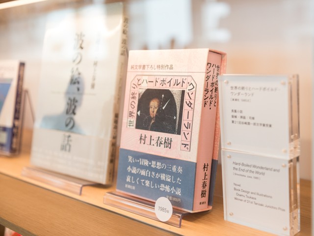 ここでは、デビューした1979年から2021年までの村上春樹作品の表紙を展示。村上さん本人から寄贈された本で、多くが初版本です。日本で刊行された村上さんの著作はもちろん、世界各国のさまざまな言語で翻訳された作品もそろっています。