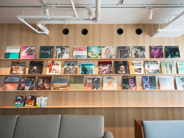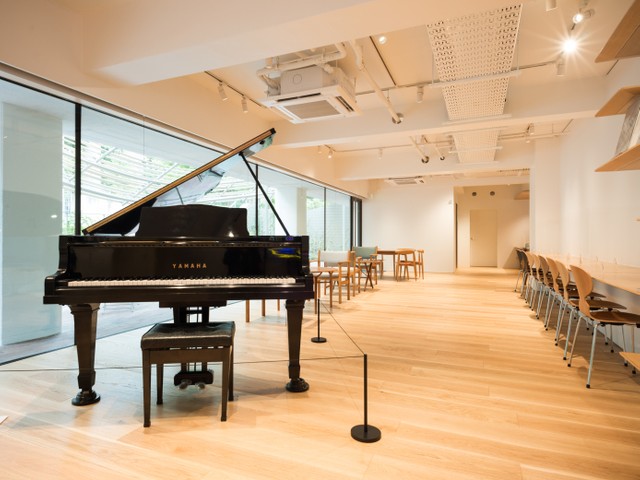 同じく地下1階には、ラウンジとカフェスペースがあります。ラウンジスペースには、村上さんが経営していたジャズ喫茶「ピーター・キャット」で使われていたグランドピアノが置かれています。