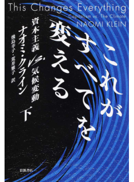 ナオミ・クラインは『ショック・ドクトリン』(岩波書店・上2860円、下2750円)で、惨事便乗型資本主義や市場原理主義を批判した。彼女は『これがすべてを変える』で、このように大企業が短期的な利益のみを追求し、科学的な言説すら支配して一国の大統領や首相を懐疑論者にさせてしまうような社会システムこそが問題だとする。そして、そのようなシステムを変えない限り気候危機は避けられないと訴える。