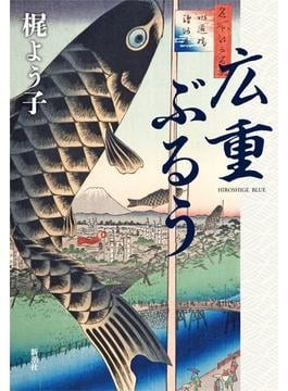 定火消(じょうびけし)同心の家に生まれた彼は、親類との確執により家督を手放して絵師となるものの、周囲からの評価はいま一つ。異国渡来の絵具(えのぐ)・プルシアンブルーの美しさに心惹かれ、代表作となる「東海道五拾三次」で大当たりを取っても、従順な妻女・加代には迷惑をかけ通し。急激な人気上昇に浮かれ、湯屋で隣り合わせた北斎に傲慢(ごうまん)な口を叩(たた)きながらも、相手の正体を知るや震え上がり、一番弟子を襲う不幸には当人以上に打ちひしがれる。だがその情けないほど平凡な彼は、生まれ育った江戸を心底愛し、町の上に広がる曇りなき青空を捉えようとする。