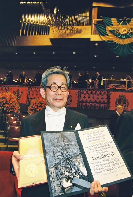 94年に川端康成に続いて日本人で2人目のノーベル文学賞を受賞した。故郷の四国の村から国家、宇宙へと神話的な文学世界が広がる「万延元年のフットボール」(67年)が翻訳され、評価されていた。受賞記念講演の題は「あいまいな日本の私」。文化勲章にも内定したが、「国家と結び付いた章だから」と辞退し、話題になった。