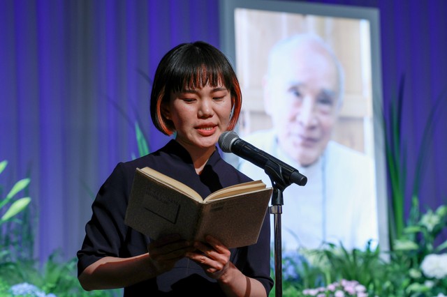 会では、作家の阿川佐和子さんによる献杯や、詩人の吉増剛造さんによるあいさつのほか、作家・詩人の池澤夏樹さんが自作の詩を朗読した。