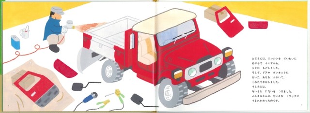 堀川真さんの絵本「あかいじどうしゃ よんまるさん」画像集