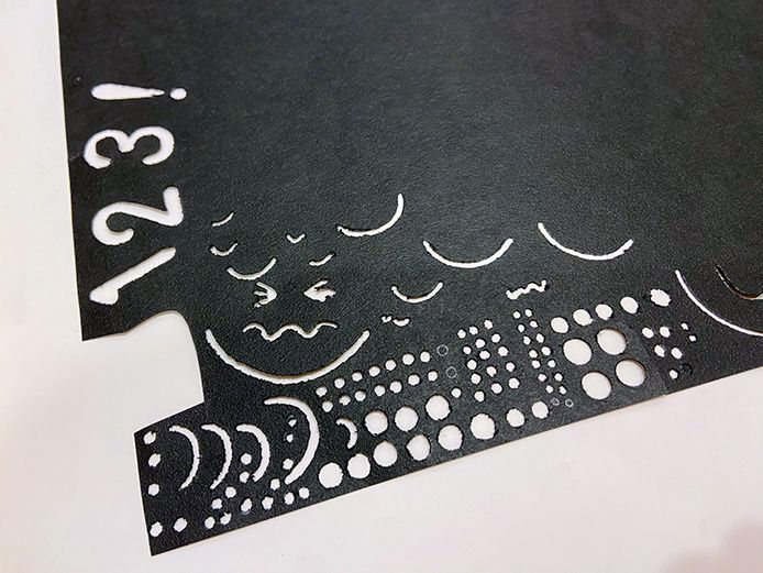 ハサミを使わず手でちぎることにしたのは、そのほうが温かみを感じられるから。基本的に原寸で作っているので、小さい“まる”がたくさん出てくるシーンはもう大変で。細かいパーツは、アウトラインを目打ちで刺してからちぎっていきました。目や口の部分は、ピンセットを使っての非常に細かい作業になりました。