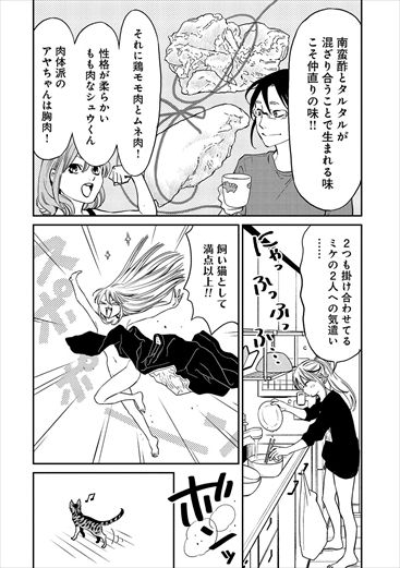 猫の手も借りたい……ほどではないが、そこそこ忙しい同棲カップルのシュウくんとアヤちゃん。飼い猫のミケは、週に1回、そんなふたりのためにごはんを作って恩返しをしている(シュウくんもアヤちゃんもお互いが作ってくれたのだと信じている)。