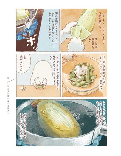 よしながふみの『きのう何食べた?』スタイルで、複数の品を同時進行で仕上げていく手順もきちっと描かれた調理シーンは料理の指南本としてもよさそう。ある日はチキン南蛮・鶏皮と小松菜の辛子和え・白菜漬けと春雨のスープ。またある日は豚バラ小ネギ巻き・オクラとツナの韓国風和え・きゅうりの味噌漬け・玉ネギの味噌汁。普段着のメニューが嬉しい。給食の献立表を見ている時と同じときめきを感じる。