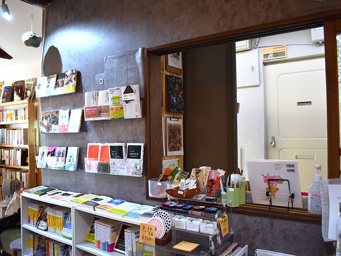 現在の在庫は約1000冊で、新刊と古本は8:2の割合になっている。古本は萩野さんの私物で、新刊も反資本主義をはじめ「必要なもの以外は置かない」姿勢を継続中だ。本棚と床材は西荻窪から持ってきたものをそのまま使い、天井のライトも自分でつけた。だから「何かに追われてもすぐに解体して持って逃げられる」と言うが、さすがに本1000冊は車なしでは厳しい気もする。西荻窪時代よりも文芸書がよく売れるそうで、地域のニーズに合わせたジャンルにも果敢に挑戦している。