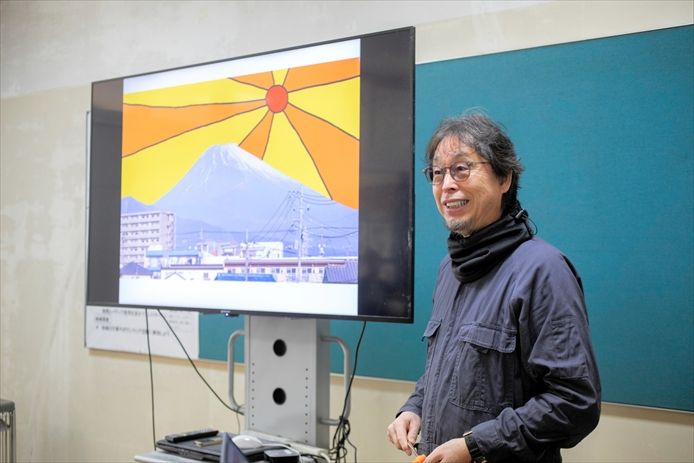 大成功に終わった授業を振り返り、「テクニックがなくたっていい作品はできる。それがアートのいいところ。わかってもらえたらいいな」と宮西達也さん。「それにしても子どもって、大人の予想をはるかに超えてくるよね!」