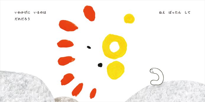 ――「はじめてのアート絵本」シリーズ2作目の『ぱったんして』(KADOKAWA)では、絵の具を紙で挟み込んで転写させる「デカルコマニー」という絵画技法を取り入れた。『ふーってして』も『ぱったんして』も巻末には解説ページを入れ、実際に絵の具遊びを楽しめるよう工夫している。