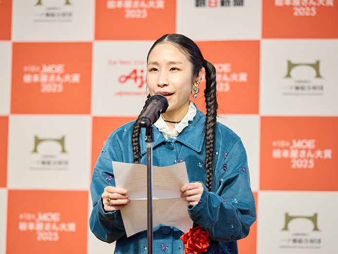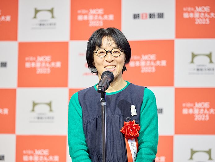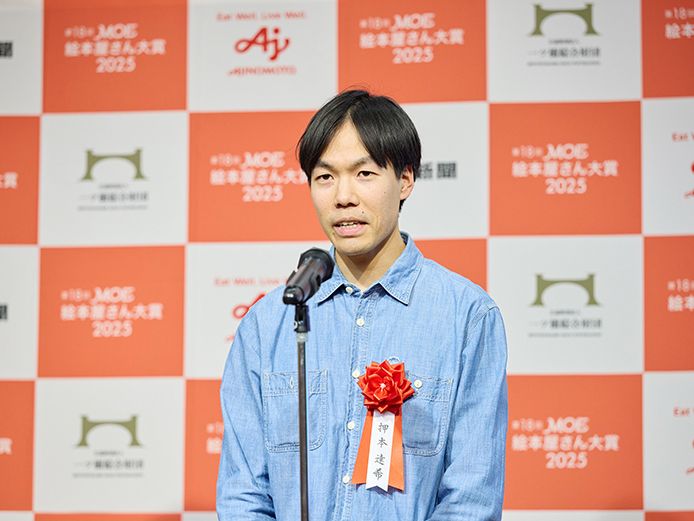 押本さんは「ダブル受賞のお知らせいただいたときはうれしかったんですけど、スピーチのために2回登壇しますと言われて、すごく憂鬱でした」と正直な気持ちを披露。「『すいかのたね』の発売が夏で、(MOE絵本屋さん大賞の)投票期間が秋からだったので、書店員さんたちの記憶にまだ新鮮に残っていたんだろうなと、今回の受賞は本当にラッキーだったと受け止めています」と謙虚に語りました。