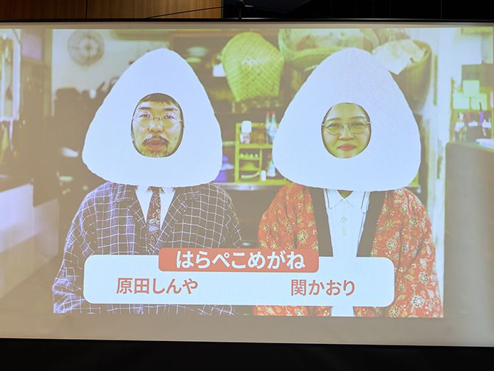 はらぺこめがね(原田しんや・関かおりの夫婦イラストユニット)からは、ビデオメッセージが寄せられ、「おにぎりと一緒にロマンが詰まっておりますので、これからもたくさん読んで、笑って、夢いっぱい召し上がってください」というメッセージとともに、「おにぎりが嫌いな子も楽しめる絵本になっています」とアピール。ちなみに2人が好きなおにぎりの具は、原田さんが「酸っぱい梅干し」、関さんが「甘い梅干し」なんだとか。