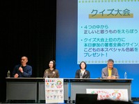 前半は、著者を交えてのクイズ大会。「“こどもの本”総選挙のWEBサイトには、投票の結果トップ何冊目までの本が載っているでしょうか」(答えは1000冊)といった本にまつわる四択問題が出題され、成績上位者10名に参加著者全員のサインが入った色紙がプレゼントされました。