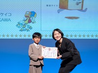 富山県から来たこどもプレゼンターから表彰状を受けとると、鈴木のりたけさんは「富山から来るのは大変。遠方からありがとうございます」と感謝の思いを伝えました。さらに「大ピンチはまだまだ日々たくさん起こります。4作目も描けそうなので、皆さん期待していてください」と、続編制作への意欲を語りました。