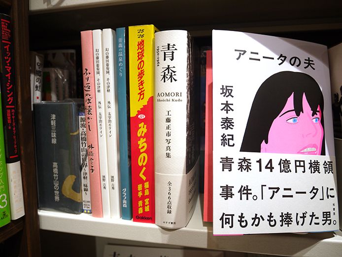青森と熊本にちなんだものを中心に、新刊も古書も土地と人のつながりを感じられるものが並んでいる。津軽のこぎん刺しや青森りんごのフレーバーティーなど、地域性のあるグッズは見ていて目が楽しくなる。