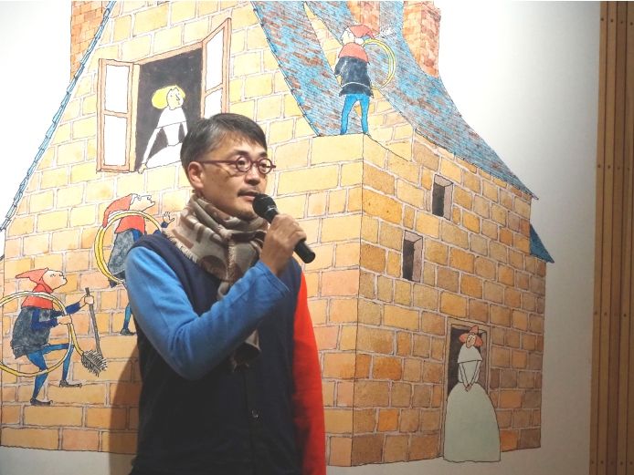 展覧会を案内してくださったPLAY!プロデューサーの草刈大介さんは、展覧会についてこう語ります。「今回は、安野さんの作品をまずはじっくり見ていただくための展示方法を試行錯誤しました。来館者に目の前のものを見て、感じて、自問自答する体験をしてほしいと思っています。安野さんの描く不思議、空想、驚き、ユーモアに、ご自身で出会って発見していただきたいです」