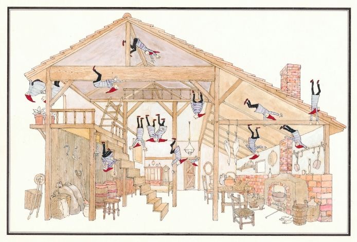 安野さんの絵本デビュー作『ふしぎなえ』や『さかさま』『ふしぎな さーかす』(いずれも福音館書店)は、一度ぱっと見ただけでは気づかない、安野さんのアイデア、ユーモア、技術力があふれる作品です。絵本をひっくり返して、どっちが天井?どっちが床?と絵を見つめ続けた体験をした方も多いのではないでしょうか。安野さんは子どもの頃、鏡に映り込んだ風景を見ながら、空想を広げていたといいます。