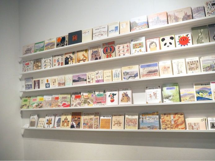 最後の小部屋は、安野さんの著作物が並ぶコーナー。上の3段は貴重本のために手に取ることができませんが、こんな作品も作っていたんだと知ってほしいと、あえて展示してあります。装幀家、文筆家としても活躍した安野さんの仕事が垣間見られます。