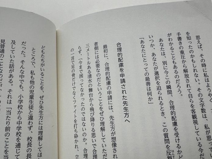 ――「合理的配慮を申請された先生方へ」の内容は、ぜひ先生に読んでもらいたいと思いました。「専門家のような第三者を設置させたほうがいいのではないか」という提言もされていましたね。