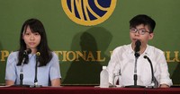 2017年6月15日、東京の日本記者クラブで記者会見した黄之鋒氏(右)と周庭氏=細川卓撮影 ©朝日新聞社