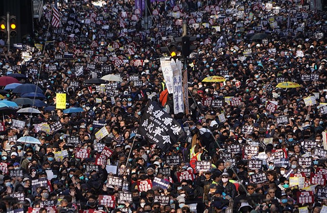 2020年6月30日、香港国家安全維持法に反対するデモの参加者ら=香港、益満雄一郎撮影 ©朝日新聞社