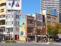 表参道の交差点、谷内六郎の壁画が目印の山陽堂書店。